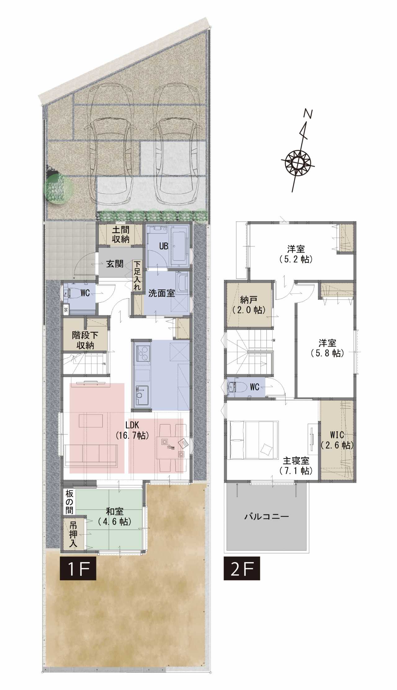 WIC、納戸、土間収納など生活スタイルに合わせて住空間を確保