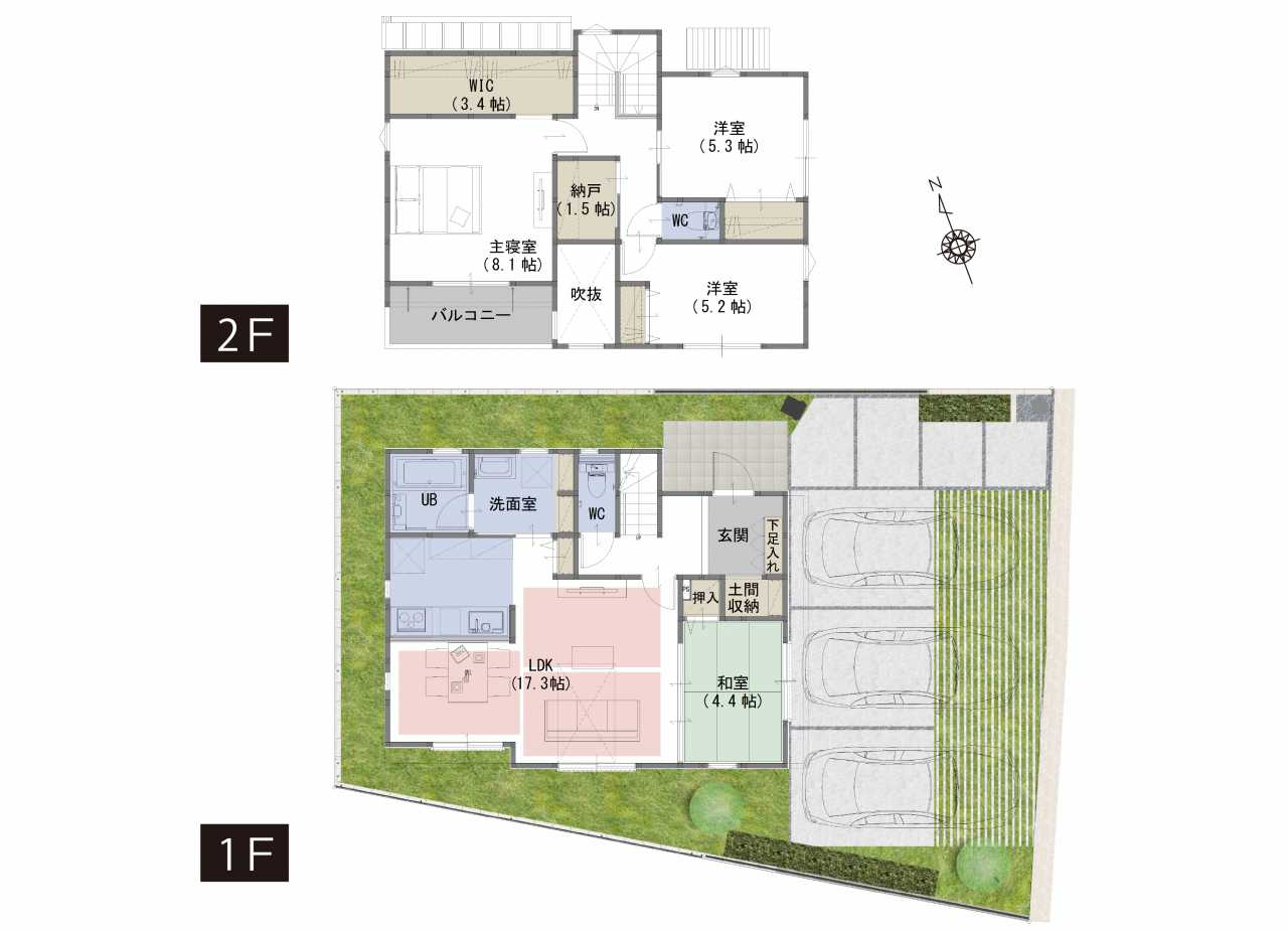 WIC、納戸、土間収納など生活スタイルに合わせて住空間を確保
