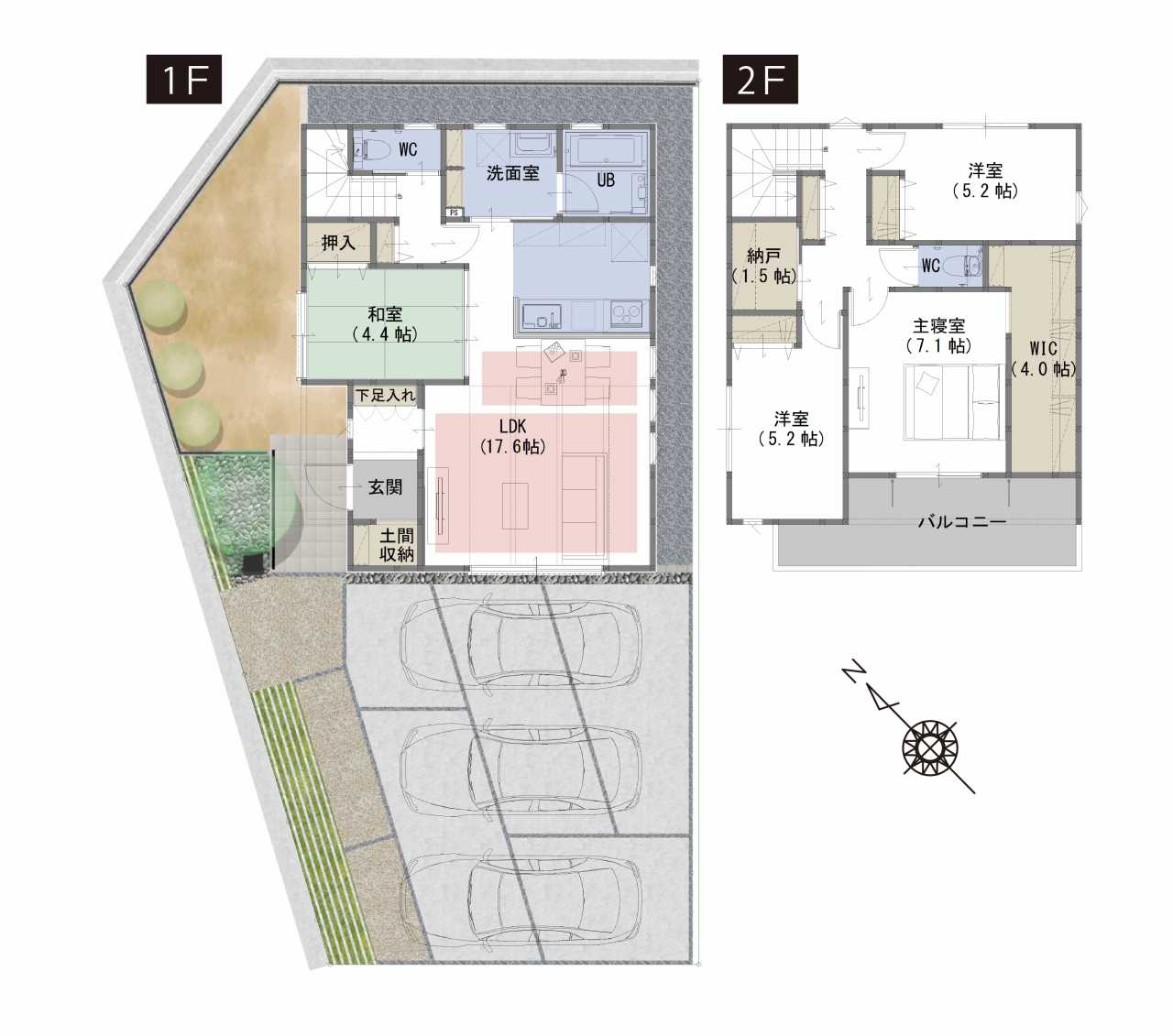 WIC、納戸、土間収納など生活スタイルに合わせて住空間を確保
