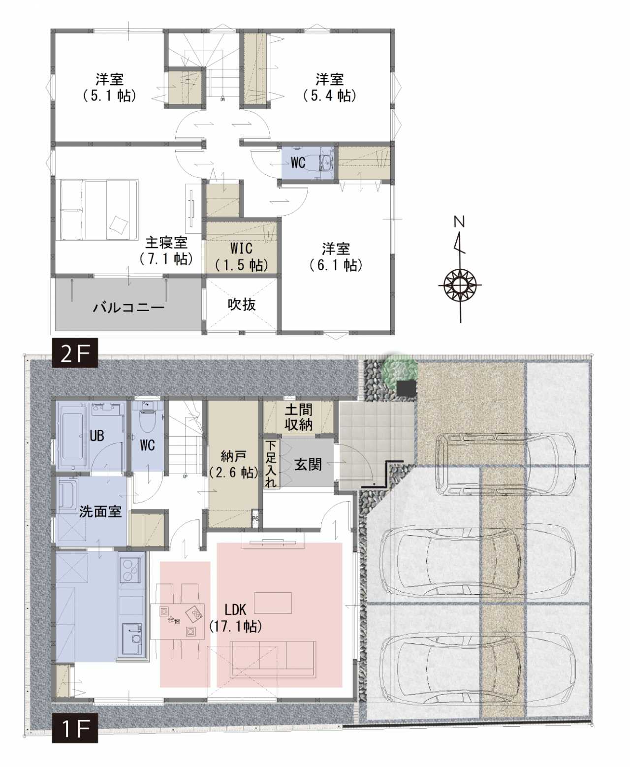 WIC、納戸、土間収納など生活スタイルに合わせて住空間を確保