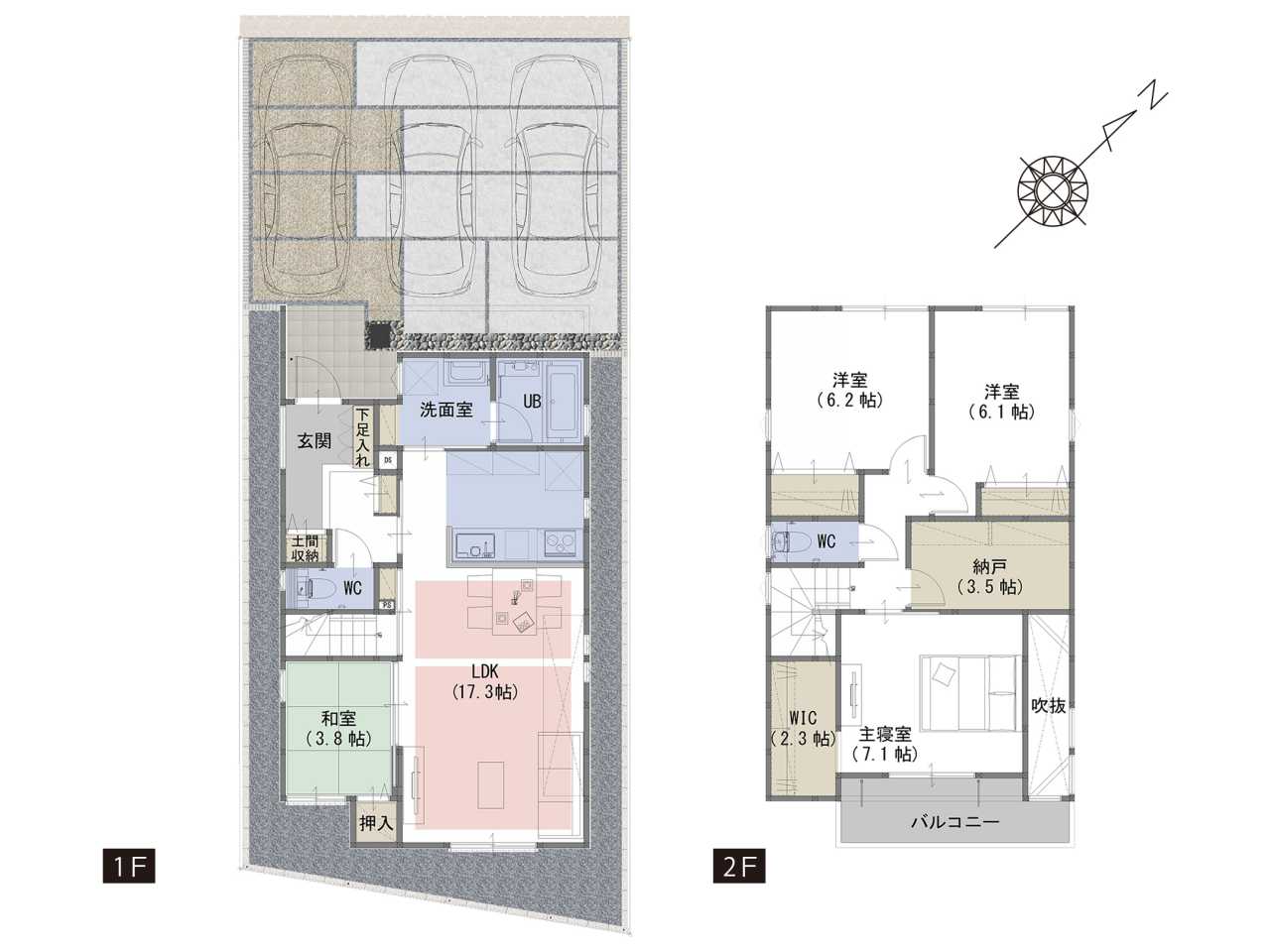 WIC、納戸、土間収納など生活スタイルに合わせて住空間を確保