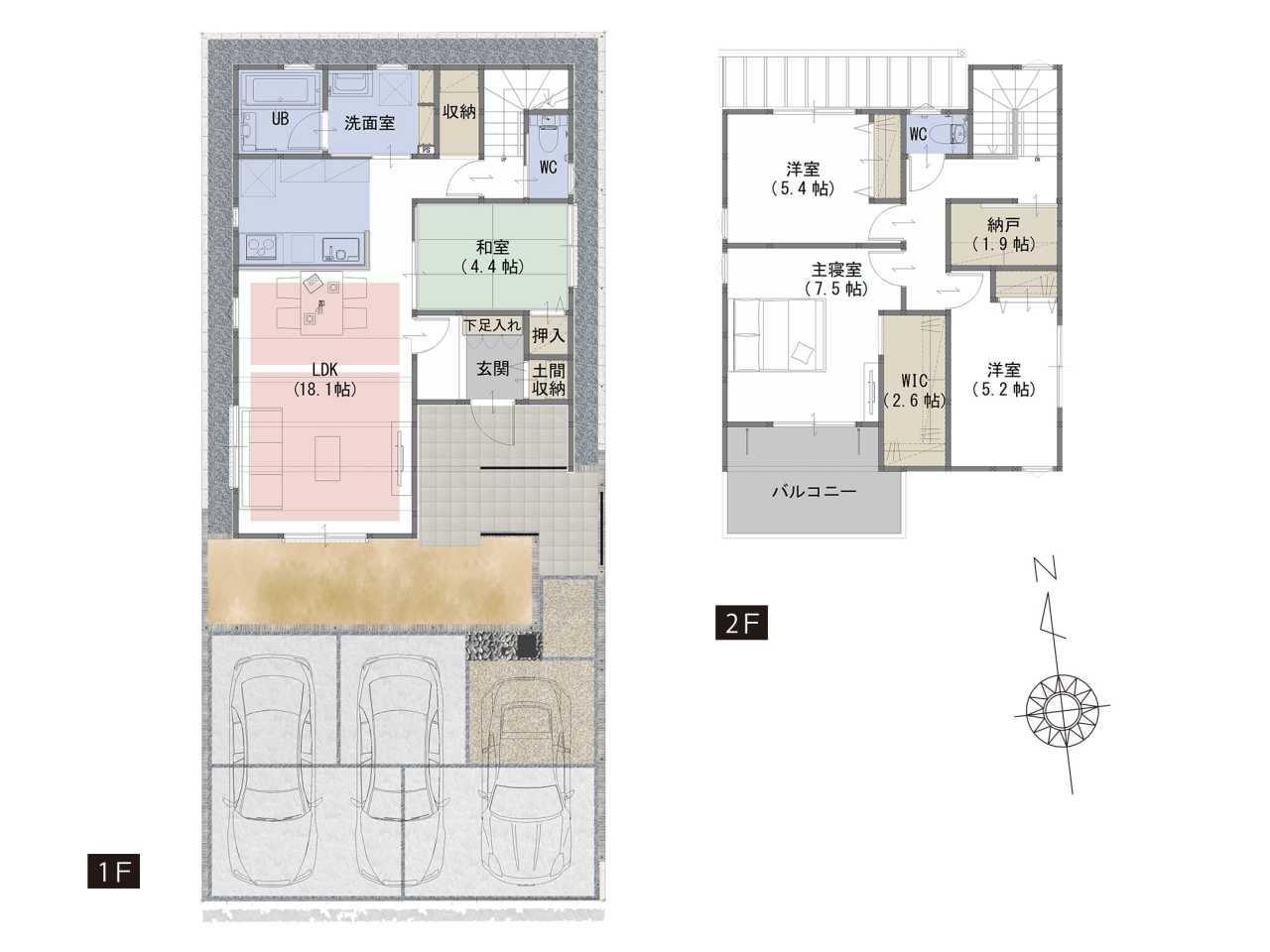 WIC、納戸、土間収納など生活スタイルに合わせて住空間を確保