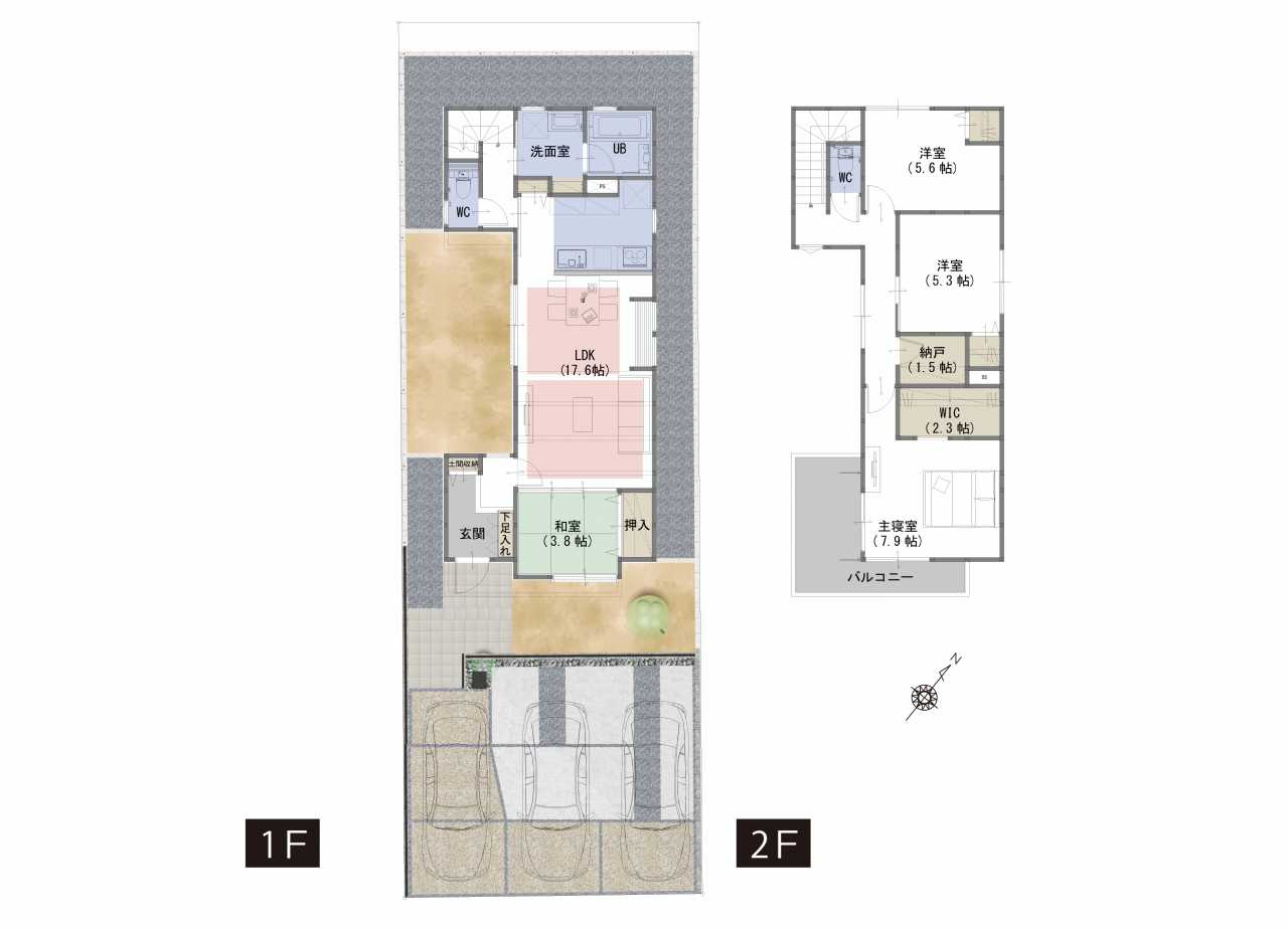 WIC、納戸、土間収納など生活スタイルに合わせて住空間を確保