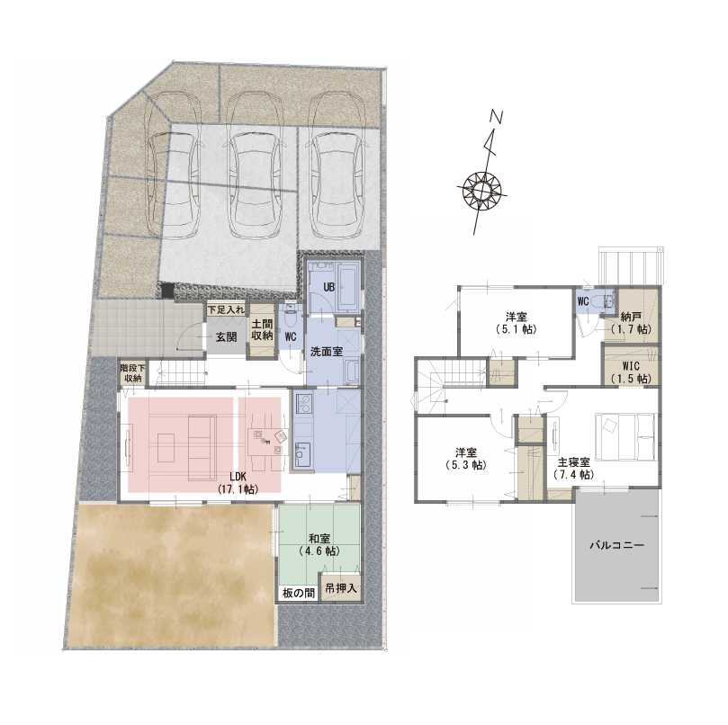WIC、納戸、土間収納、階段下収納など生活スタイルに合わせて住空間を確保