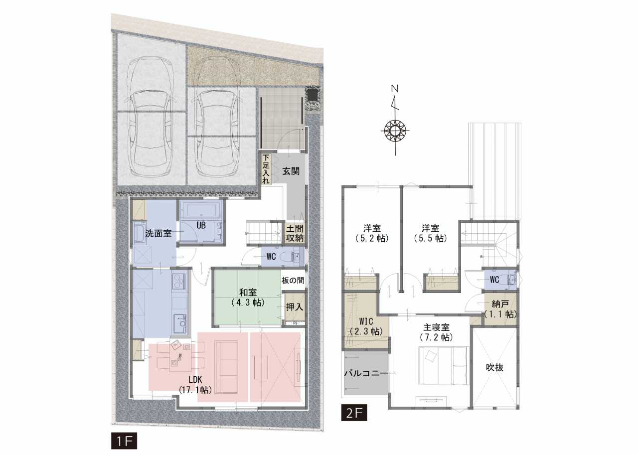 WIC、納戸、土間収納など生活スタイルに合わせて住空間を確保
