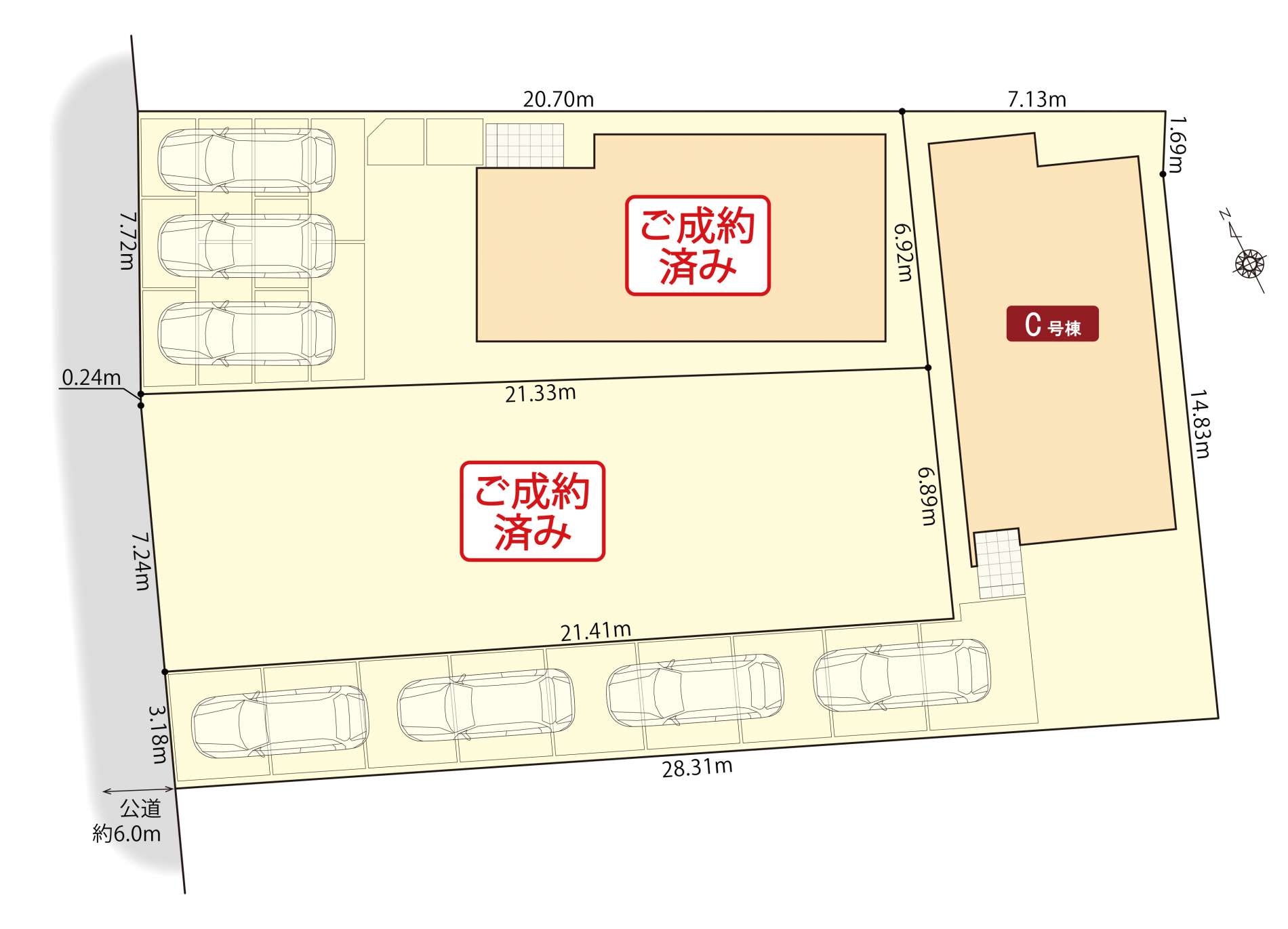 C号棟:55坪超の敷地面積を活かした4台駐車の区画です。