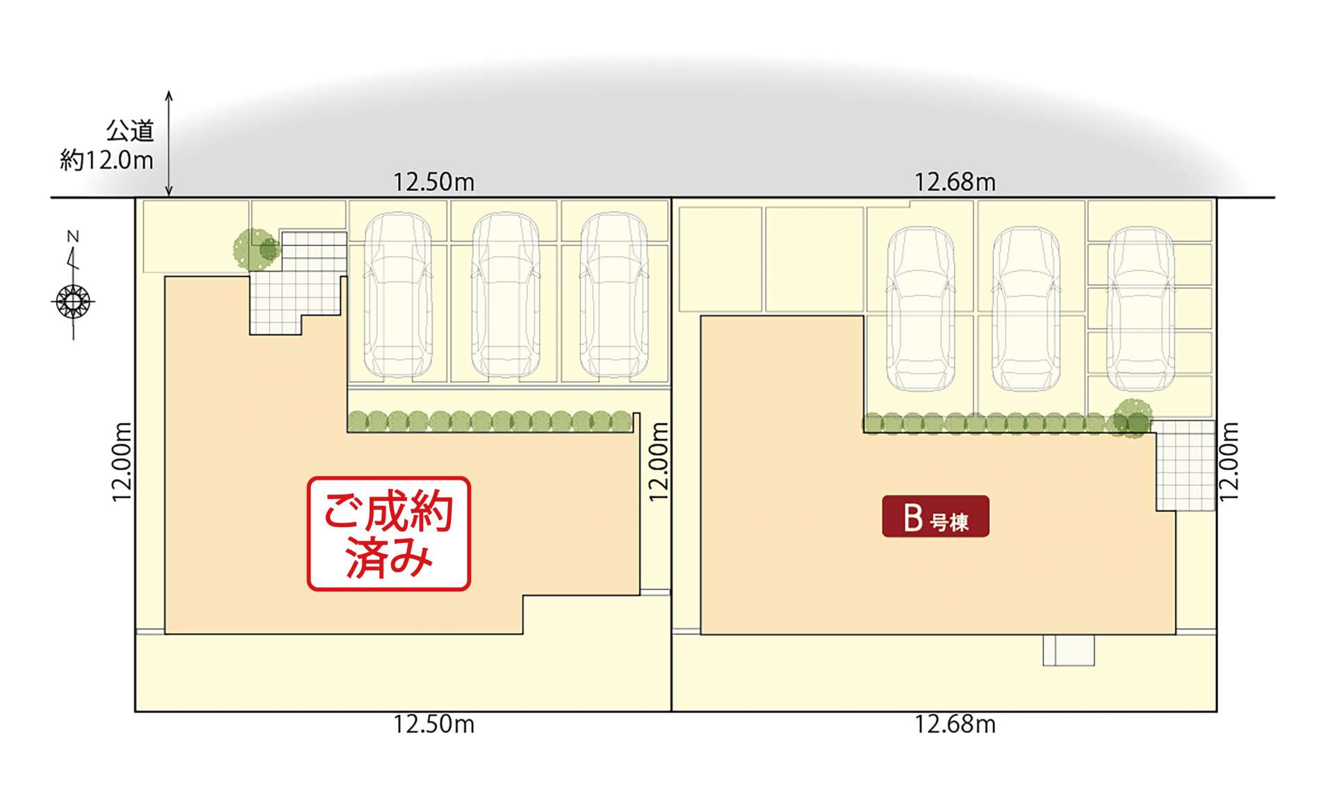 広い公園やスーパー、商業施設へもアクセス良好。大きさや形も似た敷地に全く異なる間取りの二邸は必見です。
